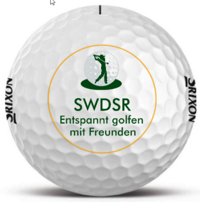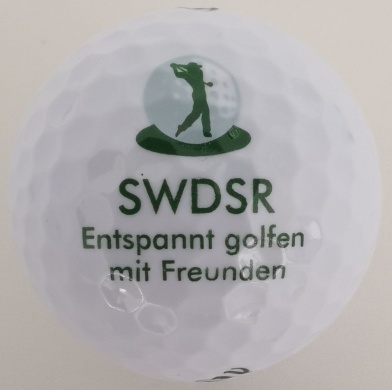 Markengolfball mit dem Logo der Südwestdeutschen Seniorenrunde bedruckt